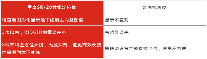 其实,想要快速探测地下管线,最有效的方法便是借助专业的定位设备。里奇SR-20管线定位仪,就是一款理想的地下管线探测工具,不仅定位精准,还简单易用,可实时在液晶屏上直观显示目标管线走向及位置等信息。即便是非开挖施工,也可轻松完成管线定位工作,大大提高施工效率。