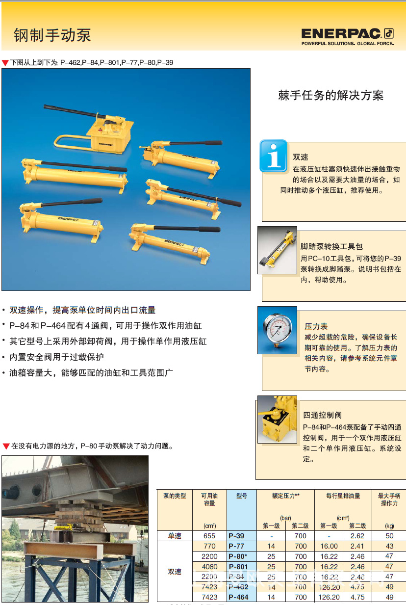 恩派克enerpac油缸油泵 手动泵 千斤顶